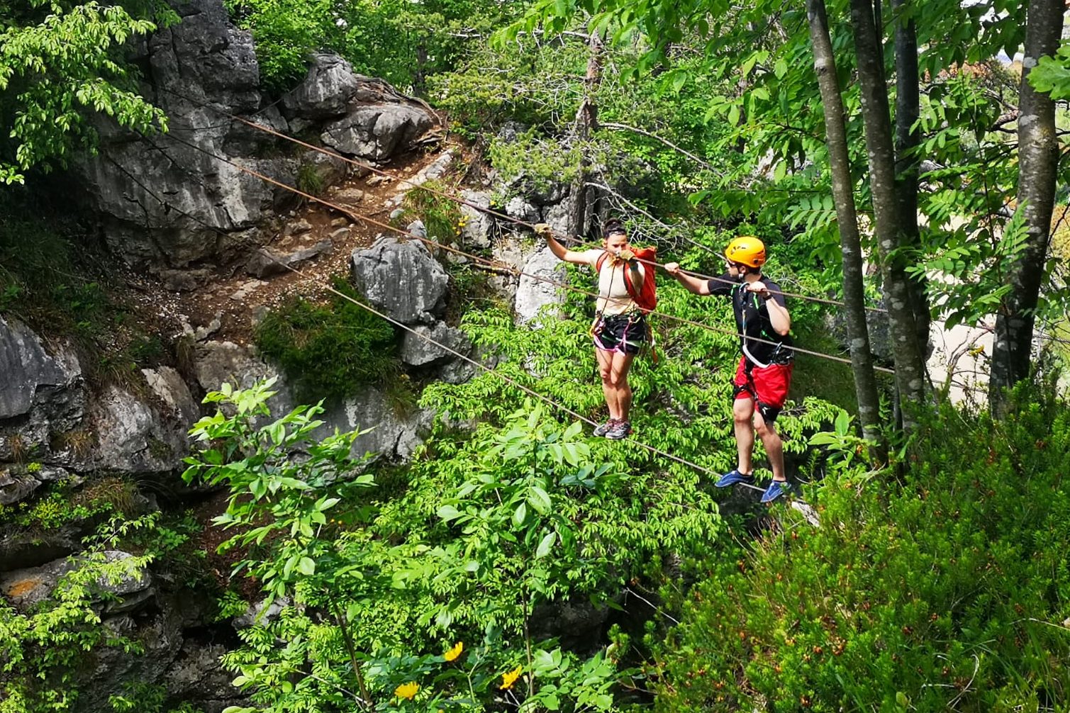 Wir konnten sowohl Klettern am Steig als auch Top-Rope – Klettern, Abseilen üben, Schluchten überqueren, Höhen überwinden – dabei kam jeder an seine Grenzen.