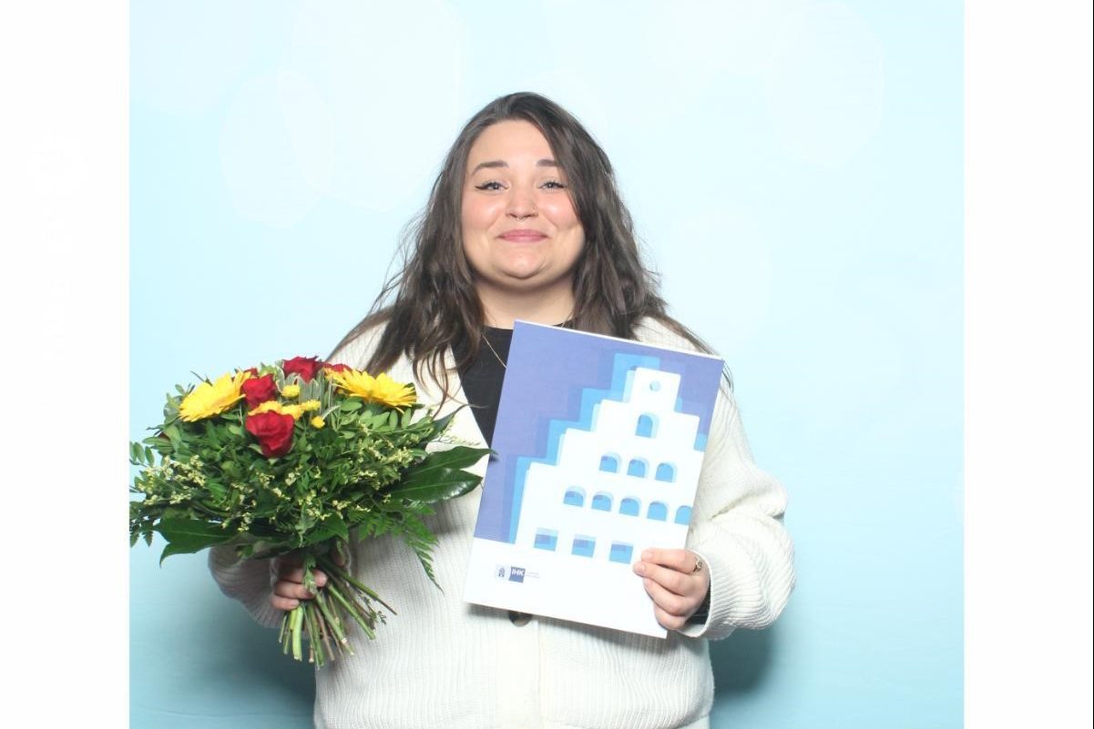 Frau Anna Eichler, die Anfang des Jahres 2022 ihre Ausbildung beim Heise-Verlag abgeschlossen hat und inzwischen als Junior-Pressereferentin dort arbeitet, wurde als landesbeste Absolventin der Medienkaufleute Digital und Print mit der Gesamtnote „sehr gut“ von der IHK Hannover ausgezeichnet.