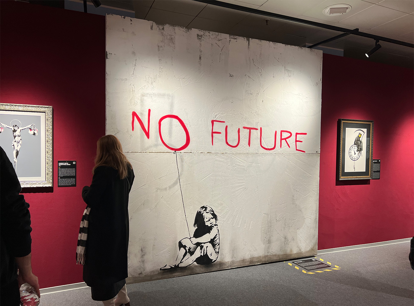 Beim Besuch der beliebten Ausstellung „Mystery of Banksy“ in Hannover konnte eine Ausbildungsklasse der Mediengestalter/-innen Digital und Print sich mit den vielschichtigen Werken des anonymen Graffiti-Künstlers und Malers Banksy auseinandersetzen.